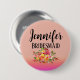 Bridesmaid | Modern Floral Personalized 3 Inch Round Button
