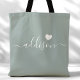 Bridesmaid Modern Script Heart Sage Green Tote Bag