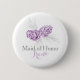 Elegant pine cone drawing button pin badge in white, purple and grey. Reads Maid of Honour Irene or personalise with your our wedding attendents title and name. Great for guests to know who is who at bridal showers, wedding rehearsals or to add to wedding favour bags.