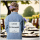 A blue denim jacket for a bridesmaid, with a cute panel on the back. The panel is patterned with pale blue polka dots, and can be personalized for the wedding day. The bridesmaid's name is at the top in stylish capital letters. The word 'Bridesmaid' is across the centre of the panel, and further down are the initials of the happy couple and their wedding date and venue. A stylish and eye-catching addition to this special occasion.