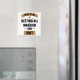 It was a bit smaller than expected, but I was too excited to check dimensions. The product itself send well printed though the grey text is a bit paint. Magnet worked perfectly on my fridge.