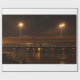 A night time shot of an end of a bridge seen as it crosses a body of water. Lit only by the bridge's lights in a long exposure technique, the bridge and surrounding water are rendered in eerie eye catching tones.