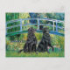 Lily Pond Bridge by Claude Monet, adapted to include two  Flat Coated Retrievers.   With varying hues of green and blue, this serene scene is one of Monet's most popular paintings.