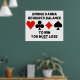 Showcase your wry bridge / duplicate bridge player side with this poster featuring the four card suits along with the following bridge saying that many bridge players will agree with: "Bridge Karma Requires Balance To Win You Must Lose".