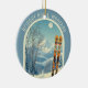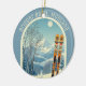 Ornament from a wonderful skiing holiday in the beautiful mountains of Bridger Bowl Montana ski area! This Ornament features an arch with a stunning blue-grey mountain landscape and retro ski boards in an orange tribal pattern in the foreground. The rest is in a lovely light blue tone with the location lettering in a modern font. The design is a lovely combination of retro and modern, and I hope you enjoy it!