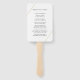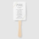 Modern geometric wedding program hand fan with two gold lines, one across the top left and one across the bottom right over a white background. The front has your ceremony events and the back has your wedding party. A minimalist design that still comes across as chic and stylish.
