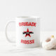 A mug with the Red Brigade logo loosely styled from memory after a shirt that Joe Strummer wore in the late 70s.
