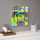 Bright abstract geometric neon pattern square wall clock