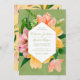 Bright and Bold floral botanical arrangement with colours of yellow, peach, pinks, and white against a Apple Green mottled background. Wonderful for a spring, summer, boho or garden wedding!