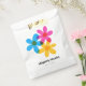 These easy to customize wedding favour bags offer a modern take on retro style with hippie daisy flowers in bright yellow, blue and magenta pink. The hand drawn graphics are designed to imitate classic risograph style printing. All of the text on these bags is ready for your custom touch with simple black printing against a clean white background.