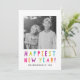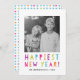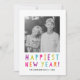 Celebrate the upcoming New Year by sending your friends a bright and cheery holiday photo card. The modern holiday photo card features "Happiest New Year" in trendy and colourful typography, placeholders for your custom photo and text, and a stylish multicolored pattern on the back.