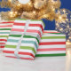 A cute, modern colorful stripe pattern is a great way to add a fun touch to your gift wrapping. Trendy and bold shades of lime green, aqua, dark green, rosy pink, and a classic red stretch horizontally across this roll of wrapping paper. The simple yet colorful gift wrap pattern is great for any recipient. Top with a bow in a coordinating hue to give your wrapped gifts a super stylish finished look.