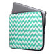 Bright Aqua Blue Faux Glitter White Chevron Girly Laptop Sleeve