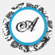Bright Aqua Damask Monogram Stickers de mariage