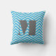 Bright Aqua Ivory and Grey Monogram Zig Zag Throw Pillow