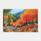 Beautiful fall landscape with trees in brilliant oranges and reds. White flowers and dot the forest floor.
