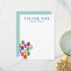 This flat thank you note card has lots of space to write a simple thank you message to birthday gift givers after the celebration and features a colourful cluster of party balloons in the lower corner.