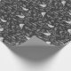 Bright Black and Winter White Birds Floral Pattern Wrapping Paper