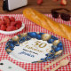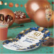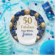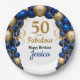 Bright and colourful blue and gold balloon arch any age birthday paper plates, change the text yourself when you order