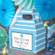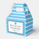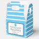 Perfectly fun bright blue and white seersucker striped hangover relief kit favour box that is customizable.