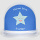 This awesome snow globe features a graphic image of a blue five pointed star with huge eyes and a big smile.