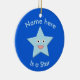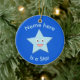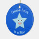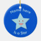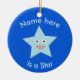 This ornament features a graphic image of a blue five pointed star with huge eyes and a big smile.
