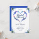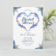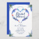 Bright Blue Floral Heart Botanical Watercolor Invitation