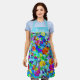 This beautiful bright blue floral apron is the perfect way to add a touch of style to your kitchen.