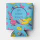 Keep your drinks cool as you sip them poolside with this personalized can cooler featuring a pattern of brightly coloured pool floats or pool tubes in the shape of a flamingo, a pineapple and a popsicle against a bright blue background. Use the template field to easily add your name or message to this pool party themed can cooler.