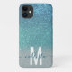 Bright Blue Teal Sparkly Glitter Ombre Monogram Case-Mate iPhone Case