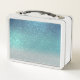 Bright Blue Teal Sparkly Glitter Ombre Monogram Metal Lunch Box