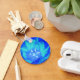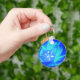 This pretty keychain features a beautiful photograph of a tulip. The photograph has been artificially coloured resulting in a bright blue flower with several shades of blue on the petals.