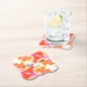 Bright Boho coasters feature an abstract design in shades of pink, strawberry, and orange, on a white background. Wording is violet script, which is fully customizable. You can use these coasters at receptions, rehearsal dinners, engagement parties, anniversaries, and other festive occasions. Designed to coordinate with other bright Boho wedding items.