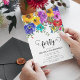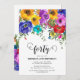 Bright and bold floral 40th birthday invitations that can be customized for any age. Design features calligraphy script lettering, hand painted watercolor flowers with green foliage and a classic elegant birthday template that is easy to customize.