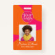 A fun employee badge with photo and your company logo in cheerful colours of hot pink and orange in a modern abstract pattern. It's a perfect choice for so many professions. Whether you run a fashion boutique or salon, a day care centre or school program, or operate in a creative field, this badge is a winner! Personalize with your business logo, the employee's photo, and their name and job title. The back of the badge has a text template for including other info as well as a QR code to include your company URL.