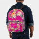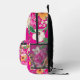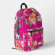 Elegant bright and bold modern spring summer flowers backpack with pretty oversized wild flower and brush script with a modern calligraphy typography with bright neon pink, orange, green and yellow flowers on neon pink
