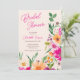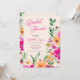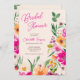 Elegant bright and bold modern spring summer flowers illustration with pretty oversized wild flower and brush script bridal shower with a modern calligraphy typography with bright neon pink, orange, green and yellow flowers on beige.