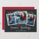 Elégant et festif carte photo de vacances encadre trois de vos photos de carré préférées avec une subtile bordure de pont et feuillage rouge et vert de vacances en regardant les coins. "Bonnes Fêtes" apparaît en bas dans le script de calligraphie blanche, avec vos noms et l'année en dessous.