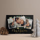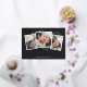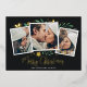 Elegant and festive holiday photo card frames three of your favourite square photos with a subtle deckled edge border and green holiday foliage peeking out at the corners with gold foil poinsettia flowers and berries. "Merry Christmas" appears along the bottom in foil calligraphy script, with your names beneath.