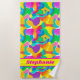 Bright yellow, purple, green and pink orbs of beautiful colour undulate in this cool pattern that is so cute for the beach or pool. Add your name and never mistake your beach towel again! Great gift for upcoming beach trip, pool party or vacation!