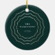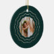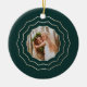 Personalize this elegant ceramic ornament with a photo on the front and a caption on the back, surrounded by a triple geometric border in faux gold foil on a rich forest green background. This chic design is perfect for commemorating a special year or a special "first."