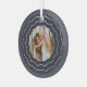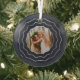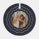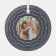 Personalize this elegant ceramic ornament with a photo, surrounded by a triple geometric border in faux gold foil on a rich navy blue background. This chic design is perfect for commemorating a special year or a special "first."