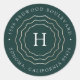 Seal your card or invitation envelopes with these elegant solid colour return address stickers featuring your initial encircled by a triple geometric border in faux gold foil on a rich hunter green background. Personalize with your return address in white around the edge of the circle. Designed to match our Bright Circle holiday collection.