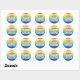 A round sticker of a brightly coloured icing on a 2 layer white cake that says "Happy Birthday" with hand lettering on each layer. Appropriate for any ones birthday! Stick the on presents, bags or scrapbooks.