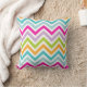 Orange, blue, light blue, pink, white, green and light purple chevron pattern. Bright, colourful and fun.