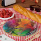Great accent for an outdoor summer party. Bright colors, vibrant floral design