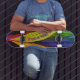 Feel the Tropical Vibes of this bright and vibrant multicolored skateboard of abstract palm tree leaves in purple, blue, green, yellow, orange and red. All the colours of the rainbow with a twist of the Tropics are on this colourful and fun skateboard. Personalize with own your Name or text.