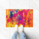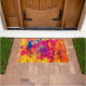 This bright abstract design features a colourful splatter paint-inspired pattern in bright yellow, hot pink, bold orange and french blue.