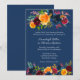 Bright colours design is a multicolor floral border on top left and bottom with a navy blue base and wedding templates in white.
