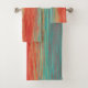 Bright Coral Red Turquoise Abstract Bath Towel Set